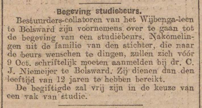 Oproep gerechtigden Wijbengaleen voor de begeving op 9 oktober 1919