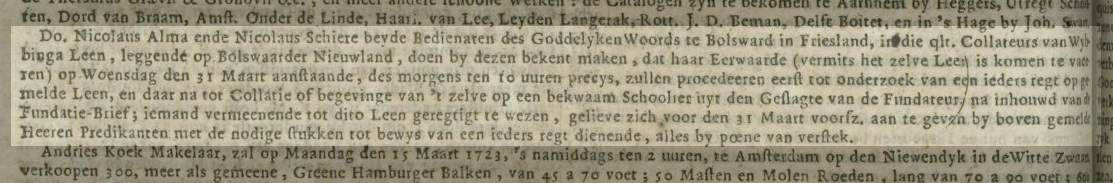 Oproep gerechtigden Wijbengaleen voor de begeving op 31 maart 1723